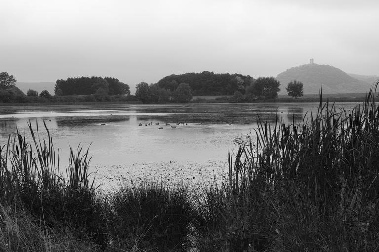 Keywords: rodder maar maar olbrück castle brohltal vulkaneifel autumn water reflection germany waters forest nature mood black white sky landscape
