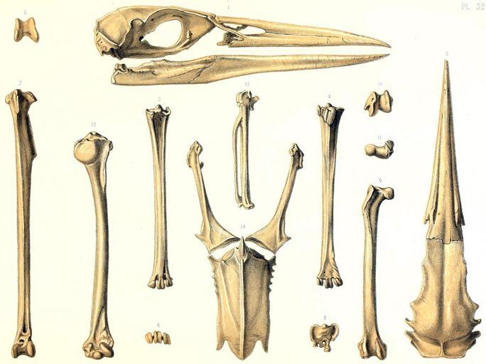 | Keywords: Rodrigues Night Heron.jpg Skull and other elements of Nycticorax megacephalus Recherches sur la faune ornithologique éteinte des iles Mascareignes et de Madagascar http //archive org/stream/recherchessurlaf01miln page/n233/mode/2up 1875 Alphonse Milne-Edwards Published by G Masson in Paris France PD-old Nycticorax megacephalus Nycticorax anatomy Ardeidae bones |