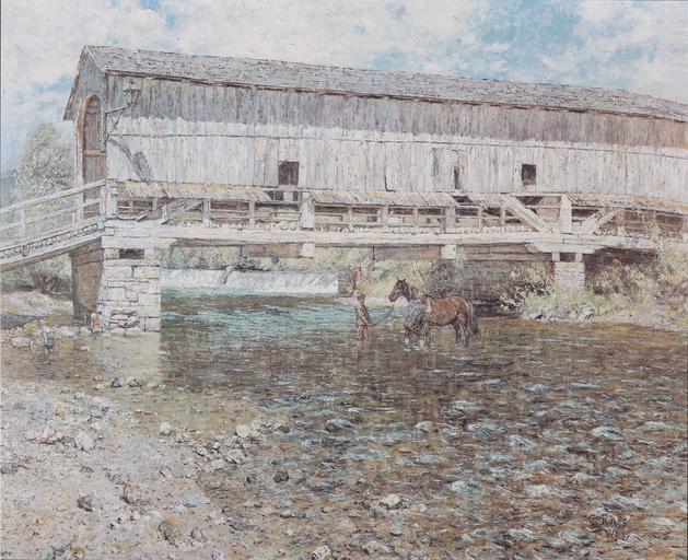 | Keywords: Rohlfs - Die gedeckte Ilmbrücke in Buchfart bei Weimar, 1889.jpg Die gedeckte Ilmbrücke in Buchfart bei Weimar oil on canvas 165 0 x 200 0 cm Weimar Kunstsammlungen zu Weimar WV-Nr 100 repro from artbook 1889 Creator Christian Rohlfs PD-old Other versions Christian Rohlfs Bridges in art Ilmbrücke Buchfart |
