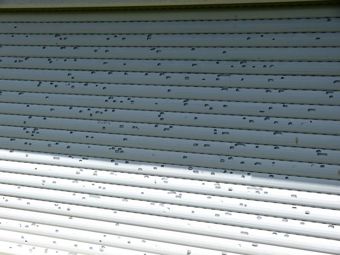 Keywords: roller shutter dents hail damage damage damaged hail holes hail holes