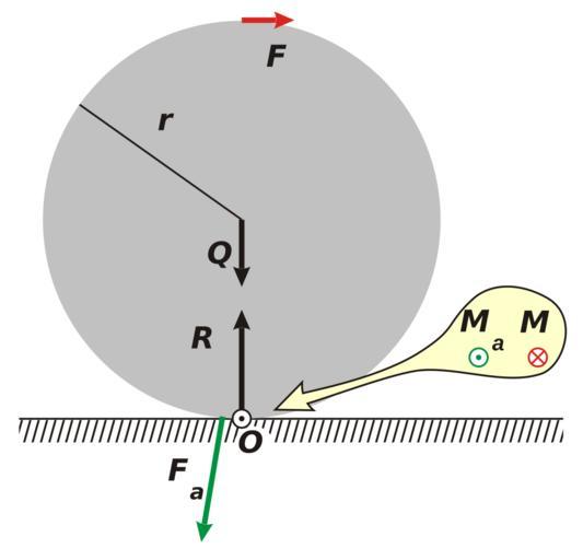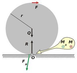 Keywords: Rolling motion-Rolling resistance.svg en Moment of force of rolling resistance pl Siły i momenty sił działające na toczące się ciało z uwzględnieniem sił adhezji i momentu sił oporu tocznego own Mpfiz Rolling motion
