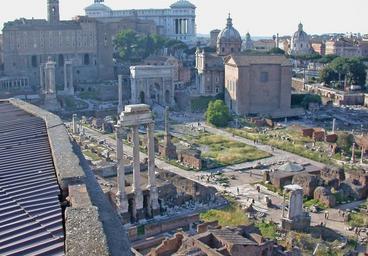 | Keywords: RomaForoRomanoVedutaDaPalatino1.JPG Roma Foro Romano veduta della piazza del Foro e degli edifici circostanti dal Palatino Foto personale maggio 2005 by MM in it wiki Rome view of Roman Forum and the neighbouring buildings from the Palatine hill Licence Forum Romanum |