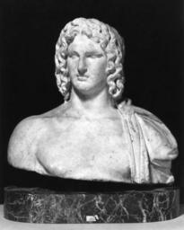 | Keywords: Roman - Bust of Alexander the Great - Walters 23121.jpg Starting from his base in Macedon in northern Greece Alexander conquered the Persian Empire in 331 BC and went on to forge an empire that ultimately stretched to India He founded the city of Alexandria in that same year His charismatic personality his premature death at the age of 33 and his idealistic vision of a world unified through Greek culture led him to be associated with heroic figures such as Heracles men who through their deeds were believed to have become gods For centuries afterward Alexander was honored as a god and as the ideal monarch Portraits of Alexander the Great emphasize his heroic character The classically youthful face the anastole an arrangement of hair upswept from the brow the long wavy locks and the hole in the crown for the insertion of a star a symbol of his deification identify this work as a portrait of the ruler The Roman date is indicated by the deep grooves in the hair and the artist's rendering of the folds of the mantle as drilled channels century 2 marble cm 32 6 35 2 18 8 accession number 23 121 35044 Giovanni Dattari Sale Cairo Paris 1912 June 17-19 1912 p 39 no 317 pl xxxv Henry Walters city Baltimore Walters Art Museum Henry Walters Acquired by Henry Walters 1912 place of origin Roman Empire Walters Art Museum license Ancient Roman sculptures in the Walters Art Museum Media contributed by the Walters Art Museum needs category review |