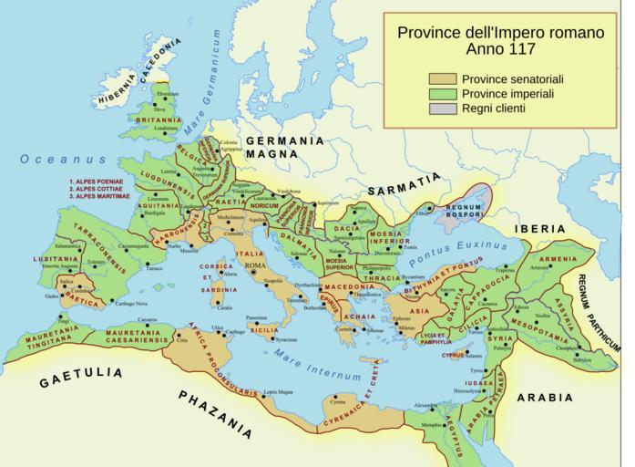 | Keywords: RomanEmpire 117 it.svg Own work The maximum extent of the Roman Empire Superimposed on a physical map legend decd87 Senatorial Provinces aade87 Imperial Provinces cccccc Client States Trabajo propio Máxima extensión del Imperio Romano Superpuesto en un mapa físico legend decd87 Provincias senatoriales aade87 Provincias imperiales cccccc Reino cliente Das Römische Reich zur Zeit seiner maximalen Ausehnung unter Trajan 117 n Chr legend decd87 Senatorische Provinz aade87 Kaiserliche Provinz cccccc Klientelkönigtum L'Impero romano alla sua massima espansione sotto Traiano anno 117 legend decd87 Province senatoriali aade87 Province imperiali cccccc Regni clienti RomanEmpire_117 svg 2009-06-28 12 55 UTC RomanEmpire_117 svg Original uploader was Andrei nacu at http //en wikipedia org en wikipedia derivative work TcfkaPanairjdde <span class signature-talk >talk</span> Translation into Italian RomanEmpire_117 svg Own work The maximum extent of the Roman Empire Superimposed on a physical map Transfered from http //en wikipedia org en wikipedia 2007-</nowiki> Uploaded with derivativeFX Maps of the Roman Empire in 117 AD Maps in Italian |
