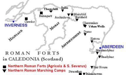 Keywords: RomanFortsNorthernScotland.gif en Map of Northern Caledonia Scotland showing Roman Forts and Marching Camps little forts during the Agricola Campaign first century and the Septimius Severus Campaign third century Map and data done with my own software Own Paul0559 2009-07 History of Scotland Ancient Roman forts in Scotland Maps of Roman Britain |