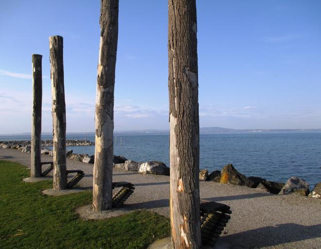 Keywords: romanshorn attraction timbers natural benches wood gravel road lake lake constance switzerland