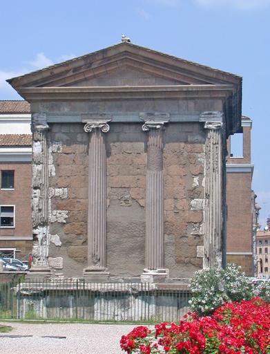 Keywords: RomaTempioPortunoRetro.JPG Roma tempio del dio Portuno conosciuto come tempio della Fortuna Virile nel Foro Boario Facciata posteriore Foto personale maggio 2005 by MM in it wiki Temple of Portunus Rome