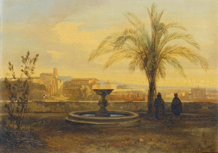 | Keywords: 'Rome, a View of the Forum from a Terrace' by Edward Lear, 1841.jpg en Rome a View of the Forum from a Terrace by Edward Lear 1841 oil on canvas 27 3 by 37 4 cm Sotheby's Edward Lear 1841 Landscape paintings by Edward Lear Forum Romanum in art PD-old-100 Images from Sotheby's |