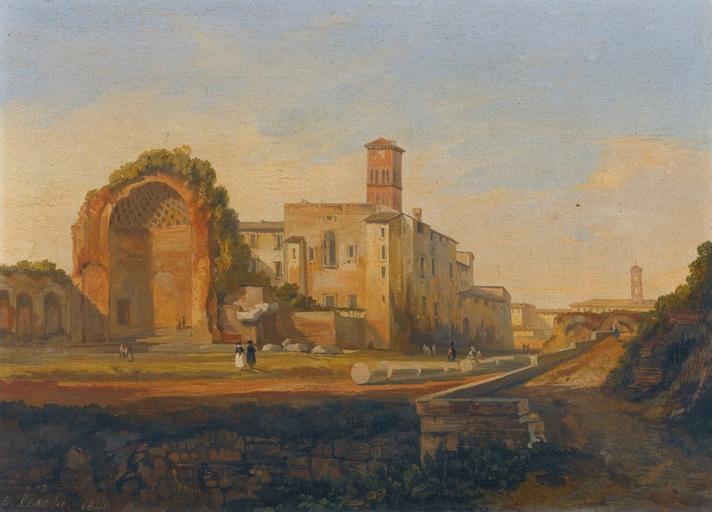 | Keywords: 'Rome, a View of the Forum with the Temple of Venus' by Edward Lear.jpg en Rome a View of the Forum with the Temple of Venus by Edward Lear 1841 oil on canvas 27 3 by 37 5 cm Sotheby's Edward Lear 1841 Landscape paintings by Edward Lear Forum Romanum in art Temple of Venus Genitrix Rome PD-old-100 Images from Sotheby's |
