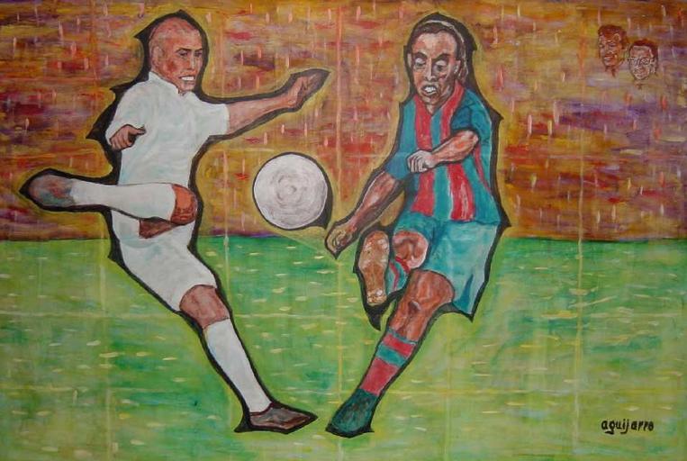 | Keywords: Ronaldo versus Ronaldinho – Real Madrid versus F.C. Barcelona.jpg Dos de las más rutilantes estrellas del fútbol mundial se enfrentan en las competiciones españolas tras llegar de su común país de origen el mítico pentacampeón Brasil En el palco los presidentes que hicieron posible este encuentro antológico Florentino Pérez y Joan Laporta del Real Madrid y del F C Barcelona respectivamente disfrutan la emoción de su deportiva rivalidad Fútbol Antología - Ronaldo versus Ronaldinho por Aguijarro Antonio Guijarro Morales pintor y cardiólogo natural de Guadix Granada http //personal telefonica terra es/web/medicina/ultimas html Título del enlace Pinturas de Aguijarro 2007-03-20 own assumed Aguijarroo http //personal telefonica terra es/web/medicina/ultimas html Título del enlace Pinturas de Aguijarro Ronaldinho Ronaldo Aguijarro |
