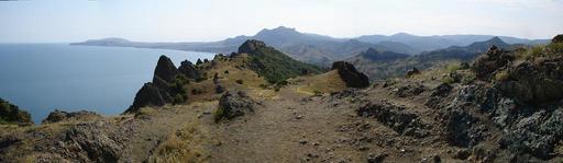 | Keywords: crimea karadag mountain sea volcano карадаг коктебель крым igneous rock ukraine horizon koktebel планерское sedimentary mesozoic landscape outdoor It erupted in middle and late Jurassic (around 150 mln years ago), being just an island in the Tethys Ocean. Earth was a very different place back then - there was no Black Sea, no Mediterranean, much of Europe was flooded under shallow waters. It all started with liquid lava flows on the sea bed, later composition of magmas has changed and it turned into stratovolcano, shaking it's neighborhood with explosive eruptions. Waters have receded and the Crimean Mountains have risen; now its dark-grey rocks are embedded into the white limestones of the peninsula's southern coast. The Kara-Dag -- the Black Mountain. Ragged by time but still dominating the surroundings. Now, it's the Karadag Nature Reserve, a paradise for geologists with some interesting wildlife as well. It erupted in middle and late Jurassic (around 150 mln years ago), being just an island in the Tethys Ocean. Earth was a very different place back then - there was no Black Sea, no Mediterranean, much of Europe was flooded under shallow waters. It all started with liquid lava flows on the sea bed, later composition of magmas has changed and it turned into stratovolcano, shaking it's neighborhood with explosive eruptions. Waters have receded and the Crimean Mountains have risen; now its dark-grey rocks are embedded into the white limestones of the peninsula's southern coast. The Kara-Dag -- the Black Mountain. Ragged by time but still dominating the surroundings. Now, it's the Karadag Nature Reserve, a paradise for geologists with some interesting wildlife as well. |