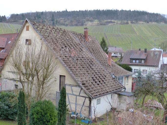Keywords: roof home chimney roofing building architecture demolition site broken tear off dilapidated decay