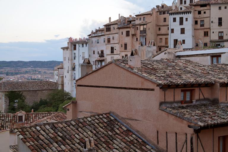 Keywords: roof tile roof chimneys sky top at home city building spain cuenca
