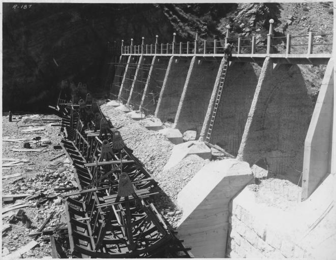 | Keywords: "Roosevelt Dam. View of south spillway showing concrete removal and chipping of piers." - NARA - 294617.jpg Scope and content Photograph from Volume One of a series of photo albums documenting the construction of Roosevelt Dam Stewart Dam and other related work on the Salt River Project in Arizona General notes 294617 Local identifier Department of the Interior Bureau of Reclamation Engineering and Research Center 05/18/1981 - 03/04/1988 NARA's Rocky Mountain Region Denver NRGA Building 48 Denver Federal Center West 6th Avenue and Kipling Street Denver CO 80225-0307 1936-07-29 Record group Record Group 115 Records of the Bureau of Reclamation 1889 - 2008 Record group ARC 444 Photograph albums compiled 1903 - 1972 Series ARC 293611 File unit File unit ARC Variant control numbers NAIL Control Number NRG-115-CONSTPHO85006-SALTRIVERR187 Other versions <gallery> File Roosevelt_Dam _View_of_south_spillway_showing_concrete_removal_and_chipping_of_piers _-_NARA_-_294617 tif tif File Roosevelt_Dam _View_of_south_spillway_showing_concrete_removal_and_chipping_of_piers _-_NARA_-_294617 jpg jpg </gallery> NARA-cooperation PD-USGov Construction of the Roosevelt Dam |