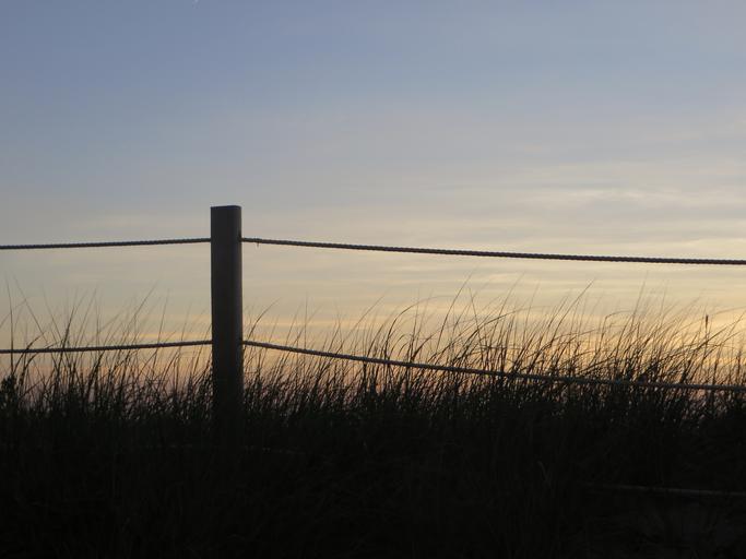 Keywords: rope fence silhouette sunset dusk evening grass fencing fence post clouds