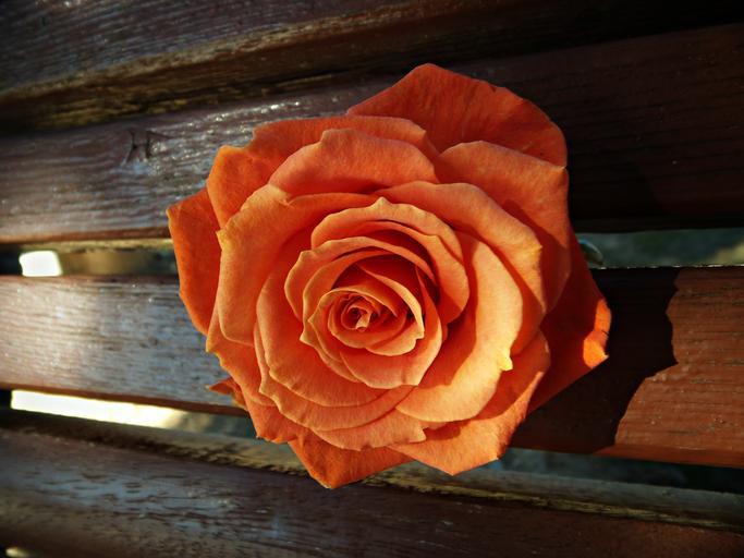 Keywords: rosa orange reflection wood petals perspective sunny beauty peace