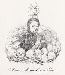 Keywords: Rosas y Calaveras.jpg en Caricature of Juan Manuel de Rosas in Muera Rosas a weekly newspaper published in Montevideo Uruguay between 23 December 1841 and 9 April 1842 O'Donnell Pacho Juan Manuel de Rosas El maldito de la historia oficial Buenos Aires Grupo Editorial Norma 2009 ISBN 978-987-545-555-9 Antonio Somellera 1812 “ 1889 1841 “42 Portraits of Juan Manuel de Rosas PD-old-100 |