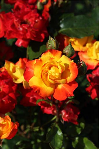Keywords: rose bud blossom bloom red yellow tender bloom floribunda roses colorful