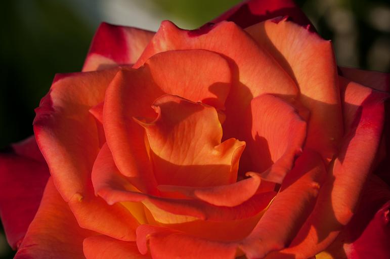 Keywords: rose flower orange red orange red blossom bloom open flower petals close garden sun sunlight summer floral photography