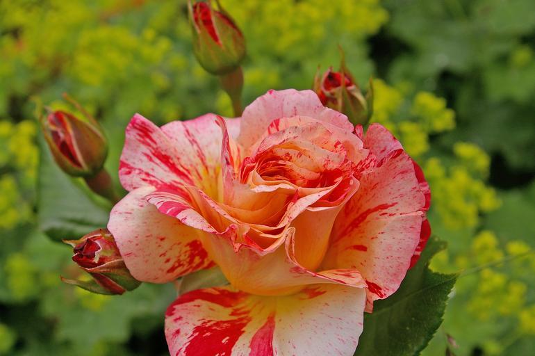 Keywords: rose garden rose painter rose multi coloured blossom bloom beauty fragrance rose bloom smell beautiful sweet open rose petals rose bud frauenmantel flower bed garden