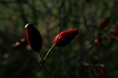 Keywords: rose hip wild rose fruit red nature autumn plant dew dewdrop morning light morning sun branch