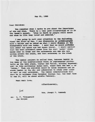 | Keywords: Rose Kennedy Letter to Children on Autobiography May 31, 1965 - NARA - 194015.tif Scope and content Letter from Rose Fitzgerald Kennedy to her children concerning her autobiography and other topics General notes 194015 Local identifier Kennedy Robert F Robert Francis 1925-1968 NARA-Author Kennedy Rose Fitzgerald 1890-1995 Author 1132997 <br /> John F Kennedy Library NLJFK Columbia Point Boston MA 02125-3398 1965-05-31 Record group Collection JFK-RFK Robert F Kennedy Papers 1937 - 06/06/1968 Record group ARC 1169 Robert F Kennedy Papers; Senate Papers; Correspondence Personal File compiled 1964 - 1968 Series ARC 194012 File unit Robert F Kennedy Papers Senate Papers Correspondence Personal File Kennedy Family 1965 01/1965 - 12/1965 File unit ARC 194013 Variant control numbers NAIL Control Number NLK-RFK-SNFILESCORPC-KENFAM1965-7EE yes Other versions <gallery> File Rose_Kennedy_Letter_to_Children_on_Autobiography_May_31 _1965_-_NARA_-_194015 tif tif File Rose_Kennedy_Letter_to_Children_on_Autobiography_May_31 _1965_-_NARA_-_194015 jpg jpg </gallery> NARA-cooperation PD-USGov Rose Kennedy Letters written messages NARA TIF images with categorized JPGs |