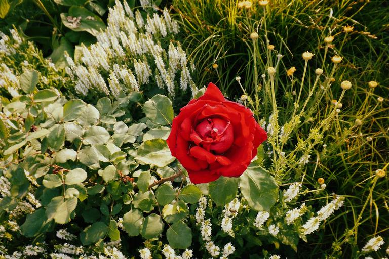 Keywords: rose red flower bed garden blossom bloom red rose rose blooms