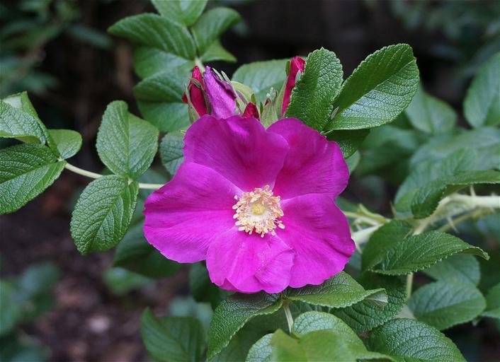 Keywords: rose rugosa rose with buds bud flower blossom bloom leaves garden nature plant