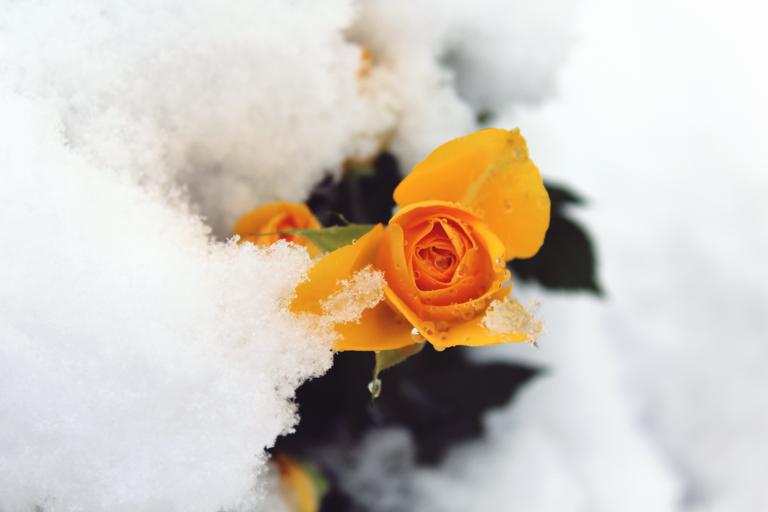 Keywords: rose snow winter nature covered blossom bloom flower ice close bouquet wintry cold white orange yellow