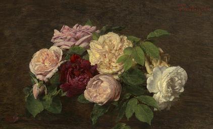 | Keywords: Roses de Nice on a Table A11169.jpg artwork creator Henri Fantin-Latour French 1836 - 1904 Roses de Nice on a Table Q20189468 1882 oil on canvas overall 26 4 x 41 9 cm 10 3/8 x 16 1/2 in framed 29 4 x 45 2 x 2 4 cm 11 9/16 x 17 13/16 x 15/16 in Collection of Mr and Mrs Paul Mellon accession number 2004 110 4 http //www nga gov/content/ngaweb/Collection/art-object-page 131027 html institution National Gallery of Art PD-old Oil still-life paintings of flowers by Henri Fantin-Latour Collections of the National Gallery of Art Uploaded with VicuñaUploader |