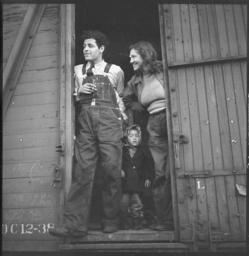 | Keywords: Roseville, Placer County, California. On the Freights. Five o"clock in the morning in Roseville switch yards for... - NARA - 532081.tif Scope and content Roseville Placer County California On the Freights Five o clock in the morning in Roseville switch yards for freight going over the Sierra A family of Mexican agricultural workers heading for Utah to top sugar beets The mother is twenty the father twenty-one the child three and the other man is the brother of the father They had slept out overnight in the grass without bedclothing; the child's overalls are wet with dew and he wears galoshes A veteran migrant he has been traveling by freight ever since he was four months old His family follow a circuit of beets and cotton through Utah Texas and California General notes 532081 Local identifier 119-CAL-16 Federal Security Agency National Youth Administration 07/01/1939 - 09/17/1942 NARA-Author Partridge Rondal 1917- Photographer 8464464 <br /> Still Picture Records Section Special Media Archives Services Division NWCS-S National Archives at College Park 8601 Adelphi Road College Park MD 20740-6001 1940-04-13 Record group Record Group 119 Records of the National Youth Administration 1934 - 1945 Record group ARC 448 Study of Youth Photographs compiled 1940 - 1940 Series ARC 532065 File unit File unit ARC Variant control numbers NAIL Control Number NWDNS-119-CAL-16 yes Other versions NARA-cooperation PD-USGov Agricultural workers Rondal Partridge Bib overalls |