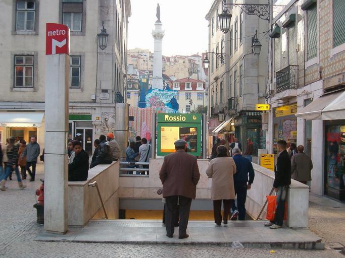 Keywords: RossioMetroLx3.JPG en Metro station Rossio Lisboa Own Koshelyev Metro station Rossio Lisboa Underground station entrances in Portugal Logos of Lisbon Metro Lisbon metro signage