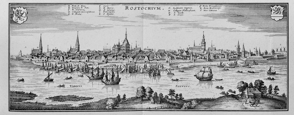 Keywords: Rostochium (Merian).jpg Artwork creator Matthäus Merian Rostock Mecklenburg-Vorpommern Deutschland b 1653 copper engraving object history exhibition history credit line de accession number Topographia Saxoniae Inferioris Frankfurt am Main 1653 PD-100 Engravings of Topographia Saxoniae Inferioris Rostock in art Rostock in the 17th century |