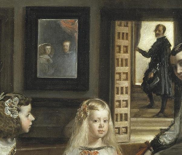 | Keywords: Rotated frame effect.jpg Las Meninas oil on canvas 318 × 276 cm El Prado creator Diego Velázquez 1656 “57 PD-old-100 Rotated and cropped section of File Las Meninas 01 jpg for en wiki featured picture candidacy discussion Details of Las Meninas |