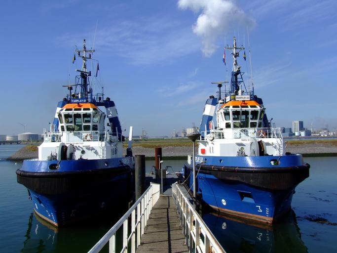 Keywords: rotterdam holland bay harbor port pier dock ships tugboats boats sky clouds summer spring nature outside water anchored