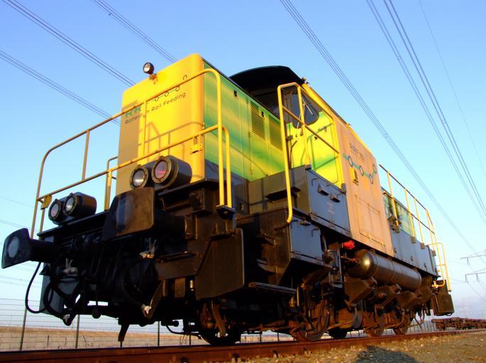 Keywords: rotterdam netherlands train locomotive colors colorful railroad railway tracks depot station sky clouds outside summer spring close-up macro