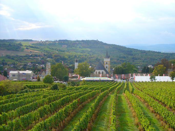 Keywords: Rotweinfest.JPG de Burgkirche mit Rotweinfest im Oktober 2009 von mir Braveheart09 2009-10-01 Vineyards of Ingelheim am Rhein Vineyards in Rhineland-Palatinate in October Ingelheim October 2009