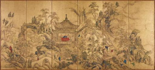 Keywords: Roukaku Sansui Zu.jpg LargeImage Roukaku Sansui Zu landscape with tower 楼閣山水図 Left of a pair of six-section folding screens byōbu painted in Chinese Southern School style This screen depicts the Zuiweng Arbor at Mount Langya in which literati hold a gathering mid other date century 18 江戸時代 technique gold paper ink and color 紙 金 色 六曲 双 cm 168 7 745 2 http //www emuseum jp/detail/100149/000/000 mode detail d_lang en s_lang en class 1 title c_e region era century cptype owner pos 33 num 1 Emuseum The screens have been designated as National Treasure in the category paintings Institution Tokyo National Museum PD-old-100 accession number A-10430 credit line Donated by Dan Inou object history Formerly in the collection of the Hitotsubashi branch of the Tokugawa family thumb left right screen Paintings on screens from Japan National Treasures of Japan paintings Ikeno Taiga Japanese folding screens |
