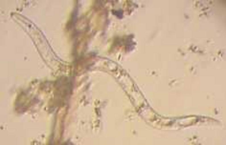 | Keywords: Roundworm.jpg Summary A roundworm taken from wet soil The front of the worm is on the left and the dark line visible at the end is its feeding apparatus known as a stylet The undulation from side to side is characteristic of roundworms which do not have circular muscles Photo by Josh Grosse 2002 From English Wikipedia This image has been released into the public domain by its creator Josh Grosse Josh Grosse Nematoda | ||||
