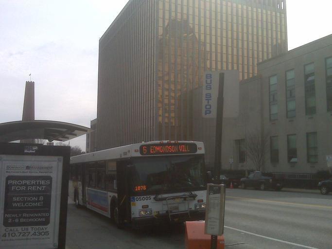 Keywords: Route 6 MTA MD on Fayette.jpg en A view of MTA Maryland's Route 6 bus in downtown Baltimore on Fayette Street own Onore Baka Sama 2010-03-25 Buses in Baltimore MTA Maryland bus service