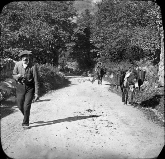 | Keywords: bibliothèque de toulouse bibliothèquedetoulouse men horses walking donkeys road trees daytime hospice route hospiceroute blackandwhite monochrome outdoor black and white Fonds Trutat - Photographie ancienne Cote : TRU C 208 Localisation : Fonds ancien Original non communicable Titre : Route de l'Hospice, 12 août 1892 / cliché Presseg Auteur : Presseg, H. Rôle de l’auteur : Photographe Lieu de création : Bagnères-de-Luchon (Haute-Garonne ; canton) Date de création : : 1892 Mesures : 12 x 9 cm Mot(s)-clé(s) : -- Route -- Terre -- Arbre -- Végétation -- Equidé -- Âne [?] -- Mulet [?] -- Cheval -- Panier -- Homme -- Béret -- Moustache -- Refuge (montagne) [Mention / citation] -- Montagne -- Bagnères-de-Luchon (Haute-Garonne ; canton) -- Pyrénées (France) -- Hospice de France (Bagnères-de-Luchon) [?] -- Luchonnais, Massif du (France) [?] -- Pique (France ; vallée) [?] -- 19e siècle, 4e quart Médium : Photographies -- Noir et blanc -- Positifs au collodion sur plaque de verre -- Scènes Voir : TRU C 209 Route de l'Hospice, 12 août 1892 / cliché Presseg TRU C 231 Chemin de la vallée du Lys, Luchon [environs], Bibliothèque de Toulouse. Domaine public Fonds Trutat - Photographie ancienne Cote : TRU C 208 Localisation : Fonds ancien Original non communicable Titre : Route de l'Hospice, 12 août 1892 / cliché Presseg Auteur : Presseg, H. Rôle de l’auteur : Photographe Lieu de création : Bagnères-de-Luchon (Haute-Garonne ; canton) Date de création : : 1892 Mesures : 12 x 9 cm Mot(s)-clé(s) : -- Route -- Terre -- Arbre -- Végétation -- Equidé -- Âne [?] -- Mulet [?] -- Cheval -- Panier -- Homme -- Béret -- Moustache -- Refuge (montagne) [Mention / citation] -- Montagne -- Bagnères-de-Luchon (Haute-Garonne ; canton) -- Pyrénées (France) -- Hospice de France (Bagnères-de-Luchon) [?] -- Luchonnais, Massif du (France) [?] -- Pique (France ; vallée) [?] -- 19e siècle, 4e quart Médium : Photographies -- Noir et blanc -- Positifs au collodion sur plaque de verre -- Scènes Voir : TRU C 209 Route de l'Hospice, 12 août 1892 / cliché Presseg TRU C 231 Chemin de la vallée du Lys, Luchon [environs], Bibliothèque de Toulouse. Domaine public |