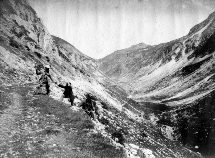 | Keywords: monochrome blackandwhite outdoor black and white Fonds Trutat - Photographie ancienne Cote : TRU B 260 Localisation : Fonds ancien (S 30) Original non communicable Titre : Route du col de Saleich [Saleich], Regnault, Cochet et St Venant (?), Vicdessos, 17 juillet 1882 Auteur : Trutat, Eugène Rôle de l’auteur : Photographe Lieu de création : Vicdessos (Ariège ; canton) Date de création : 1882 Mesures : : 13 x 18 cm Observations : Notes manuscrites Trutat : "Obj[ectif] hémisphérique rapide ; papier Morgan ; B 195". Mot(s)-clé(s) : -- Montagne -- Col (montagne) -- Chemin -- Versant rocheux -- Neige -- Groupe -- Homme -- Costume masculin -- Chapeau -- Canotier -- Bâton (marche) -- Randonnée pédestre -- Eté -- Regnault, Félix -- Saint Venant, de -- Cochet -- Saleix (Ariège) -- Auzat (Ariège) -- Vicdessos (Ariège ; canton) -- Vicdessos (France ; vallée) -- Pyrénées (France) -- Saleix, Col de (France) -- 19e siècle, 4e quart Médium : Photographies -- Négatifs sur papier -- Noir et blanc -- Morgan -- Paysages -- Portraits de groupe numerique.bibliotheque.toulouse.fr/cgi-bin/library?c=phot... Bibliothèque de Toulouse. Domaine public Fonds Trutat - Photographie ancienne Cote : TRU B 260 Localisation : Fonds ancien (S 30) Original non communicable Titre : Route du col de Saleich [Saleich], Regnault, Cochet et St Venant (?), Vicdessos, 17 juillet 1882 Auteur : Trutat, Eugène Rôle de l’auteur : Photographe Lieu de création : Vicdessos (Ariège ; canton) Date de création : 1882 Mesures : : 13 x 18 cm Observations : Notes manuscrites Trutat : "Obj[ectif] hémisphérique rapide ; papier Morgan ; B 195". Mot(s)-clé(s) : -- Montagne -- Col (montagne) -- Chemin -- Versant rocheux -- Neige -- Groupe -- Homme -- Costume masculin -- Chapeau -- Canotier -- Bâton (marche) -- Randonnée pédestre -- Eté -- Regnault, Félix -- Saint Venant, de -- Cochet -- Saleix (Ariège) -- Auzat (Ariège) -- Vicdessos (Ariège ; canton) -- Vicdessos (France ; vallée) -- Pyrénées (France) -- Saleix, Col de (France) -- 19e siècle, 4e quart Médium : Photographies -- Négatifs sur papier -- Noir et blanc -- Morgan -- Paysages -- Portraits de groupe numerique.bibliotheque.toulouse.fr/cgi-bin/library?c=phot... Bibliothèque de Toulouse. Domaine public |