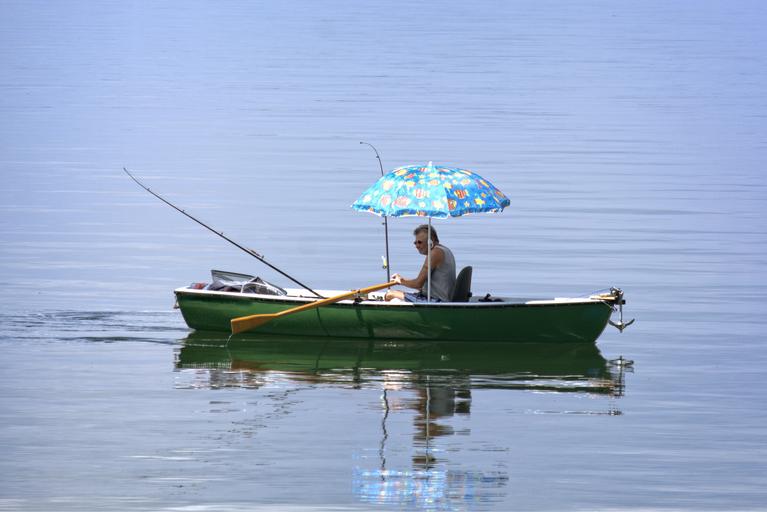 Keywords: rowing boat boot person angler lake water parasol fischer waters