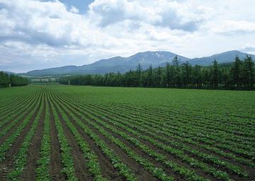 Keywords: soy farm the village monoculture in a row agriculture green legume leaf field crop bean soybean summer vegetable horizon over land growth dirt rural scene landscape