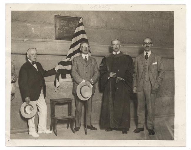 | Keywords: smithsonian institution smithsonianinstitution american flag americanflag judge historical image historicalimage white men whitemen four flag portrait men official scholar plaque unveiling plaqueunveiling moustaches royal cortizzos royalcortizzos turn of the century turnofthecentury men posing menposing hat suit cerimony ceremony cortissoz 1920 black and white blackandwhite photo photograph zerbe foaf:depicts=http://nla.gov.au/nla.party-804132 foaf:depicts=httpnlagovaunlaparty804132 xmlns:foaf=http://xmlns.com/foaf/0.1/ xmlns:foaf=httpxmlnscomfoaf01 archives of american art archivesofamericanart monochrome black and white Description: Group photo showing Cortissoz second from left. Cortissoz, Royal, 1869-1948 Creator/Photographer: William H. Zerbe Medium: Black and white photographic print Dimensions: 21 cm x 26 cm Date: 1920 Persistent URL: www.aaa.si.edu/collections/images/detail/royal-cortissoz-... Repository: Archives of American Art Collection: Charles Scribner's Sons Art Reference Department Records, c. 1865-1957 Accession number: aaa_charscrs_4241 Description: Group photo showing Cortissoz second from left. Cortissoz, Royal, 1869-1948 Creator/Photographer: William H. Zerbe Medium: Black and white photographic print Dimensions: 21 cm x 26 cm Date: 1920 Persistent URL: www.aaa.si.edu/collections/images/detail/royal-cortissoz-... Repository: Archives of American Art Collection: Charles Scribner's Sons Art Reference Department Records, c. 1865-1957 Accession number: aaa_charscrs_4241 |