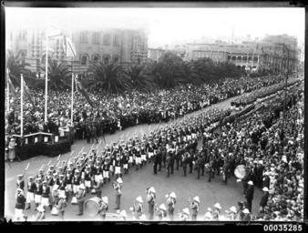 | Keywords: hood collection hoodcollection 35285 samuel j hood collection samueljhoodcollection hood hms hood hmshood hms repulse hmsrepulse royal navy royalnavy navy naval personnel navalpersonnel royal marines band service royalmarinesbandservice 1924 british special service squadron britishspecialservicesquadron sydney sailors macquarie street macquariestreet blackandwhite monochrome black and white From 27 November 1923 to 28 September 1924, the British Royal Navy’s Special Service Squadron cruised around the world visiting and thanking those countries and allies who had offered their support during World War I. It was an opportunity to show naval strength and renew alliances. Samuel J Hood and possibly a number of other photographers belonging to his studio, travelled to various vantage points and photographed the fleet's arrival in Sydney. This photo is part of the Australian National Maritime Museum’s Samuel J. Hood Studio collection. Sam Hood (1872-1953) was a Sydney photographer with a passion for ships. His 60-year career spanned the romantic age of sail and two world wars. The photos in the collection were taken mainly in Sydney and Newcastle during the first half of the 20th century. The ANMM undertakes research and accepts public comments that enhance the information we hold about images in our collection. This record has been updated accordingly. Photographer: Samuel J. Hood Studio Collection Object no. 00035285 From 27 November 1923 to 28 September 1924, the British Royal Navy’s Special Service Squadron cruised around the world visiting and thanking those countries and allies who had offered their support during World War I. It was an opportunity to show naval strength and renew alliances. Samuel J Hood and possibly a number of other photographers belonging to his studio, travelled to various vantage points and photographed the fleet's arrival in Sydney. This photo is part of the Australian National Maritime Museum’s Samuel J. Hood Studio collection. Sam Hood (1872-1953) was a Sydney photographer with a passion for ships. His 60-year career spanned the romantic age of sail and two world wars. The photos in the collection were taken mainly in Sydney and Newcastle during the first half of the 20th century. The ANMM undertakes research and accepts public comments that enhance the information we hold about images in our collection. This record has been updated accordingly. Photographer: Samuel J. Hood Studio Collection Object no. 00035285 |