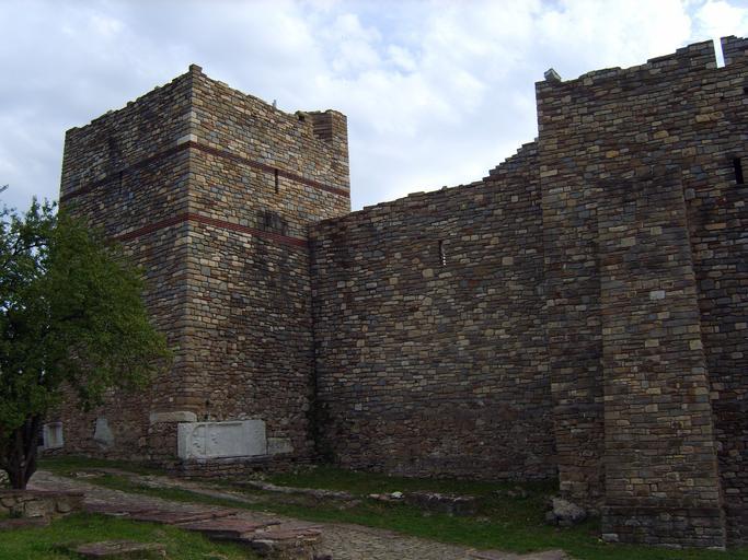 Keywords: Royal Palace in Tarnovo 11.JPG en Roman gravestone Royal Palace in Tsarevets Veliko Tarnovo bg Римска надг обна плоча вг адена в основите на кула на Ца ския дво ец в Ца евец own Kandi 2009-04-21 Tsarevets walls Tsarevets palace