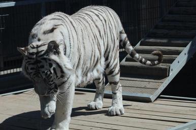 | Keywords: Panthera tigris tigris. CC0 waiver: To the extent possible under law, I waive all copyright and related or neighboring rights to this work. Panthera tigris tigris. CC0 waiver: To the extent possible under law, I waive all copyright and related or neighboring rights to this work. Royal White Bengal Tiger descending ramp at Cougar Mountain Zoological Park.jpg en A Royal White Bengal Tiger walking having just descended a ramp in its habitat at Cougar Mountain Zoo own Dcoetzee 2009-07-03 15 29 53 47 33 11 N 122 4 49 W region US White tigers at Cougar Mountain Zoo cc-zero Panthera tigris tigris. CC0 waiver: To the extent possible under law, I waive all copyright and related or neighboring rights to this work. |