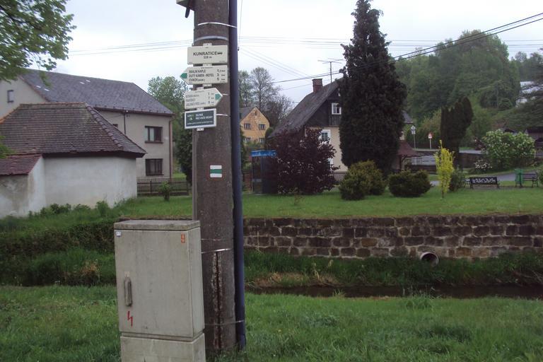 Keywords: Rozcestník v Kunraticích.JPG cs Rozcestník je vedle obecního úřadu own Zákupák 2014-05-07 Kunratice u Cvikova Hiking and footpath fingerposts in Česká Lípa District