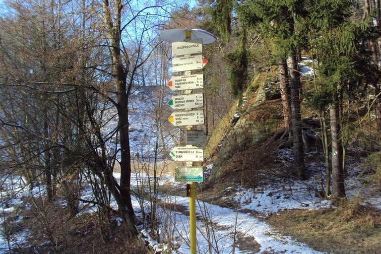 Keywords: Rozprechtice rozcestník.jpg cs Rozcestník Rozprechtice u Dubé own Zákupák 2011-01-29 Rozprechtice Dubá Hiking and footpath fingerposts in Dubá Naučná stezka Dubsko - Kokořínsko Taken with Sony DSC-S930